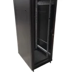 Instalación estándar de 19”, puerta delantera de vidrio templado y posterior microperforada con apertura de 180°, con chapa de seguridad de presión y palanca, Paneles laterales desmontables de fácil instalación. Ingreso de cables por la parte superior e inferior del gabinete, paneles desmontables en base y techo para la instalación de 2 o 4 ventiladores, bastidores para fijación de equipos deslizables en profundidad, con perforación para pernos enjaulados y con unidades de rack marcadas. Ruedas resistentes, niveladores ajustables para carga pesada, fabricación en acero laminado al frio. CUMPLE CON LAS NORMAS: ANSI/EIA RS-310-D, IEC297-2 DIN41494, PIEZA 1, DIN414945 PART 7 ESTÁNDAR ETSI, CAPACIDAD DE CARGA 800 KG, CARGA ESTÁTICA ( NIVELADORES ) GARANTIA : 0 5 A Ñ OS