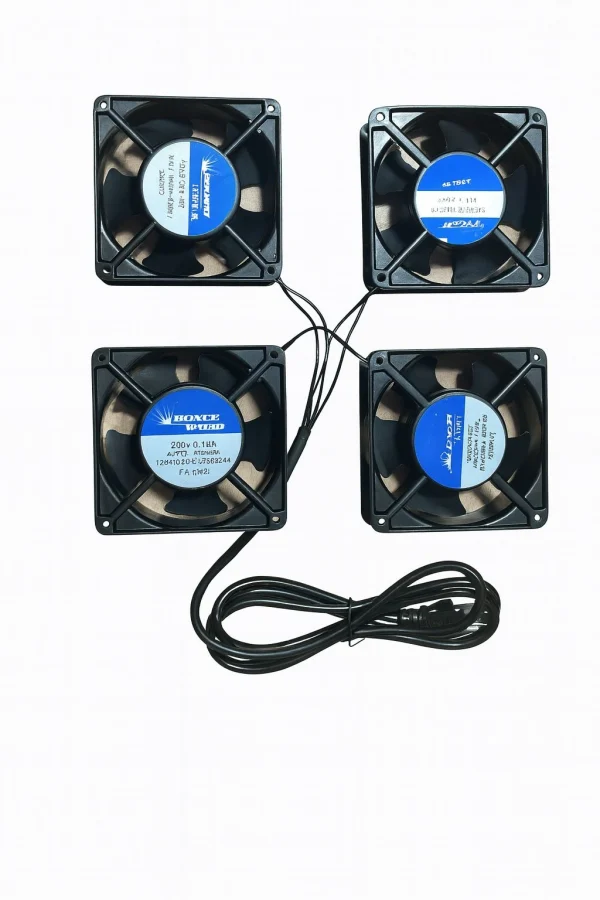 Kit de 4 ventiladores 220 V para gabinetes/racks que mejora extracción de aire caliente, para instalación drecta a teho de gabinete.