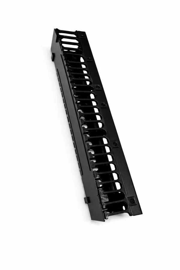Elaborado en PVC resistente en base metálica, montaje en 02 UR en el gabinete, con perforacion en la parte posterior para el pase de cable, perforaciones en los laterales para ordenamiento de cables, Tapa abisagrada y desmontable.